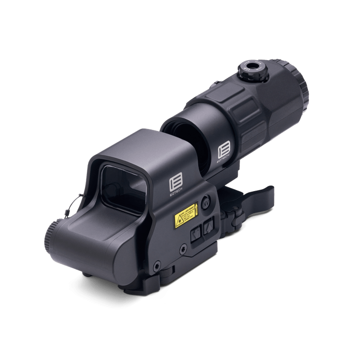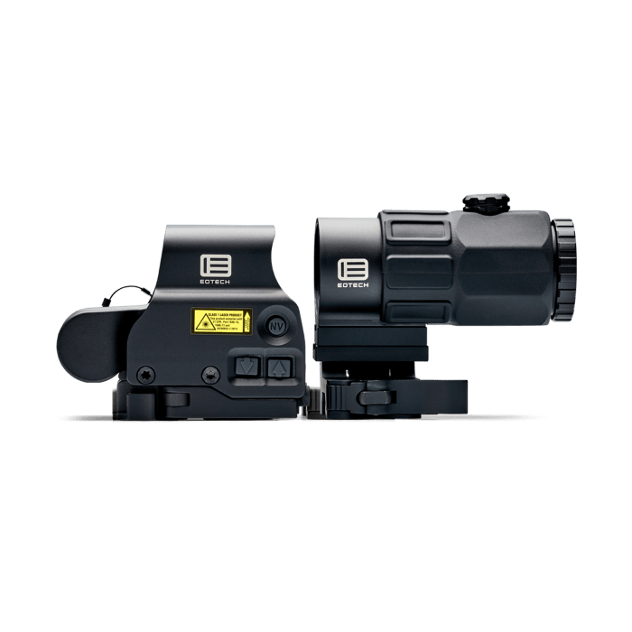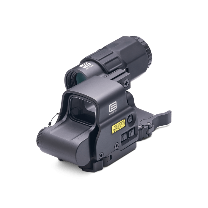 EOTECH Holographic Hybrid Sights give you lightning-fast holographic targeting at close range and magnified precision at distance. The flip-to-side magnifier lets you seamlessly switch between engagement distances.